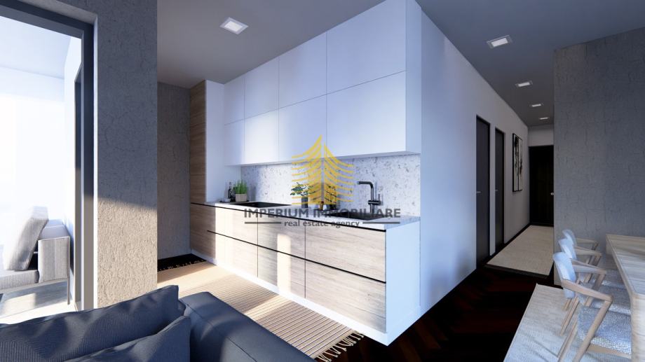 Prostrani dnevni open space boravak povezan s kuhinjom i blagovaonicom stvara moderan i svijetao prostor, savršen za opuštanje i druženje. Velika staklena stijena omogućuje obilje prirodnog svjetla i izlaz na natkriveni balkon. Kupac ima mogućnost odabira između tri različite kuhinje, čime je omogućena personalizacija prostora prema vlastitim željama i stilu.