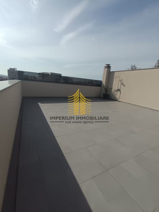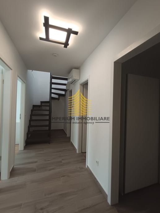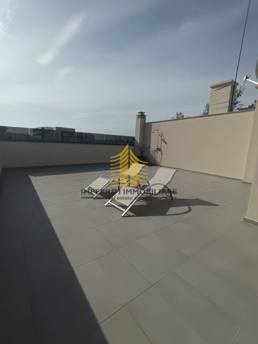 Stan se nalazi na zadnjem katu, što osigurava dodatnu privatnost i predivan pogled na more te okolnu prirodu. Prostor je vrlo sunčan zahvaljujući optimalnoj orijentaciji i velikim staklenim površinama koje omogućuju obilje dnevnog svjetla tijekom cijelog dana. Stan ima dvije spavaće sobe i dodatne prostorije, a ukupna površina od 193 m² pruža zaista izdašan raspored za ugodan boravak i funkcionalan život. Posebna pažnja posvećena je detaljima, čime je postignut skladan spoj estetike i praktičnosti.