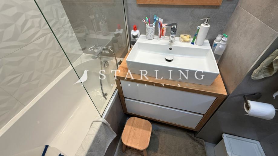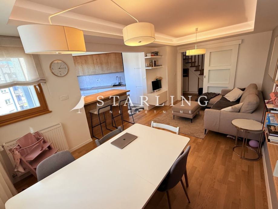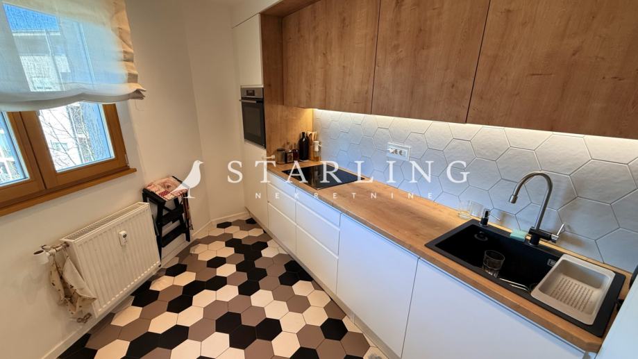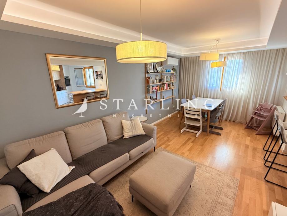 Stan je djelomično namješten, klimatiziran (4 klima uređaja), s novim radijatorima i pametnim termostatima. Uređen je u skandinavskom stilu s neutralnim bojama, drvom i čistim linijama. Kuhinja je opremljena Bosch Serie 6 i 8 aparatima, a veći dio namještaja izrađen je po mjeri.