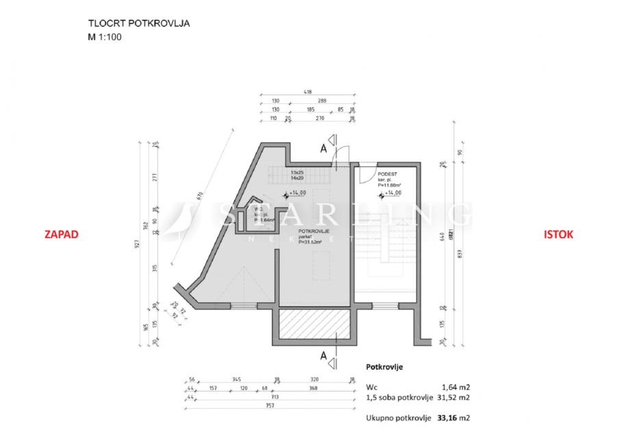 2. etaža (33 m²): velika spavaća soba, walk-in ormar, prostor za home office i kupaonica