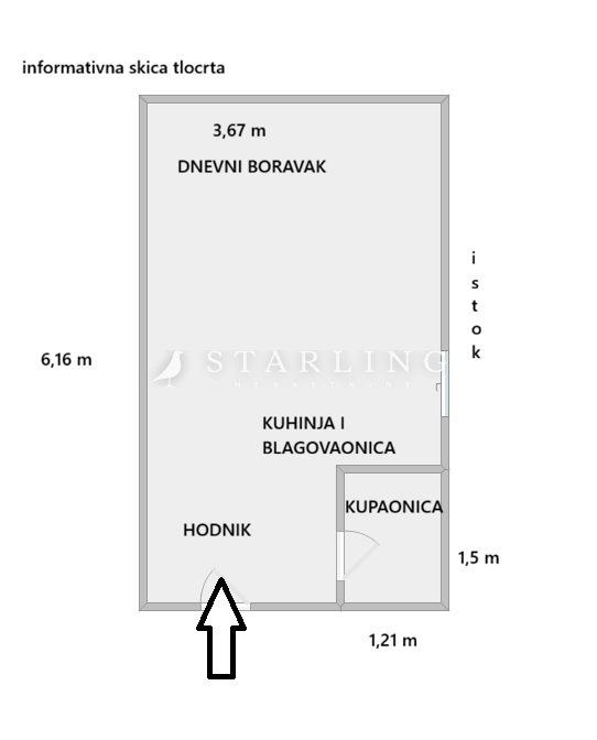 Stan se sastoji od dnevnog boravka/spavaćeg djela s kuhinjom i blagovaonicom, kupaonice i hodnika.