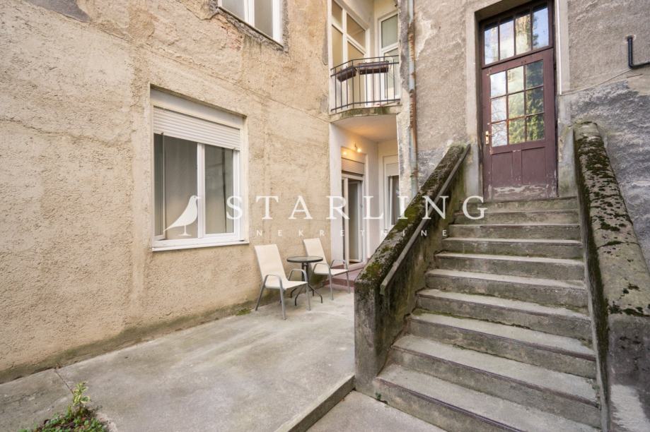 Stan ima izlaz na dvorišnu stranu preko terase i pristup velikom i mirnom vrtu koji pripada cijeloj zgradi, ali u praksi vrt koristi samo ovaj stan.