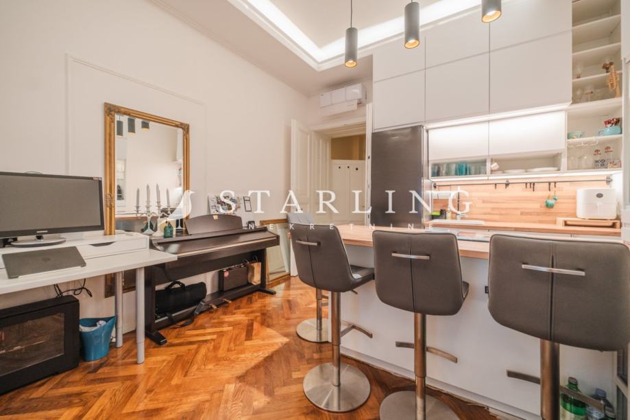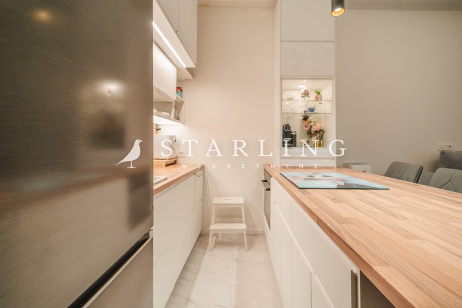 Stan se sastoji se od dnevnog boravka s kuhinjom i blagovaonicom, dvije spavaće sobe, kupaonice s wc-om i hodnika. Dodatno svaka spavaća soba ima svoju kupaonicu od kojih je u jednoj napravljen walk in ormar, a uz minimalni zahvat se može vratiti u prvobitno stanje kupaonice.