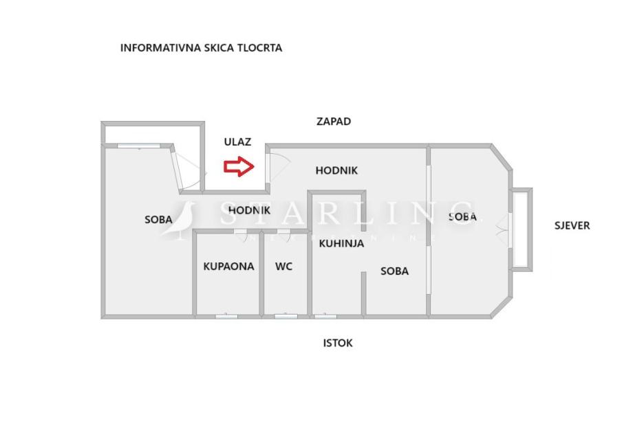 Stan se sastoji od 3 velike prostorije, kuhinje, kupaonice, zasebnog wc-a, hodnika i 2 balkona.