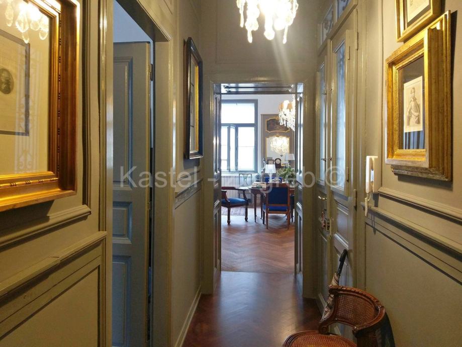 Vrlo lijep i potpuno obnovljen i uređen stan u zgradi u Kačićevoj ulici blizu Britanskog trga. Stan je na drugom katu i ima puno dnevnog svjetla. Stan je klasičnog rasporeda za stanove toga doba izgradnje. Dvije sobe su okrenute na zapad, treća soba gleda na dvorište, na istok. Kupaona sa wc-om je u stražnjem dijelu stana. Kuhinja i soba za goste je orijentirana na dvorišnu stranu. Stan je potpuno obnovljen 2018., kada su uređene sve instalacije, podovi, zidovi, nova kupaona, obnovljena stolarija. Prozori na stražnjoj strani stana su promijenjeni, dok su na uličnoj strani obnovljeni i uređeni. Stan je vrlo ugodan za život. Visina stropa 3,90 m. U zgradi su samo tri stana, po jedan na svakom katu. Zgrada je jako uredna i održavana, nakon potresa konstrukcijski ojačana - razina 2.