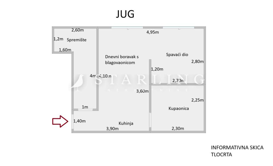 Sama garsonijera ima 26 m2 te joj pripada i spremište površine 6 m2.
