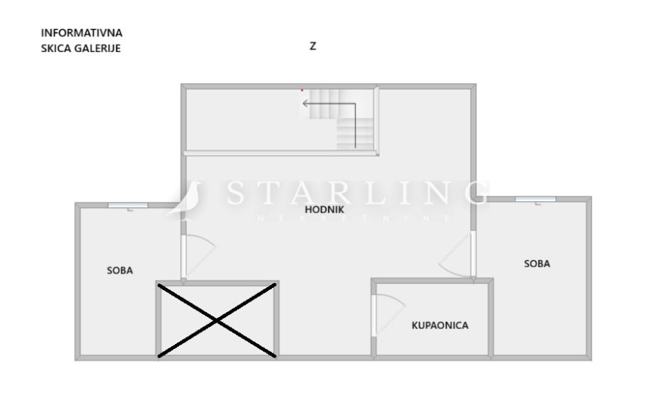 Na gornjoj etaži stana nalazi se galerija, dvije spavaće sobe i kupaonice s wc-om.