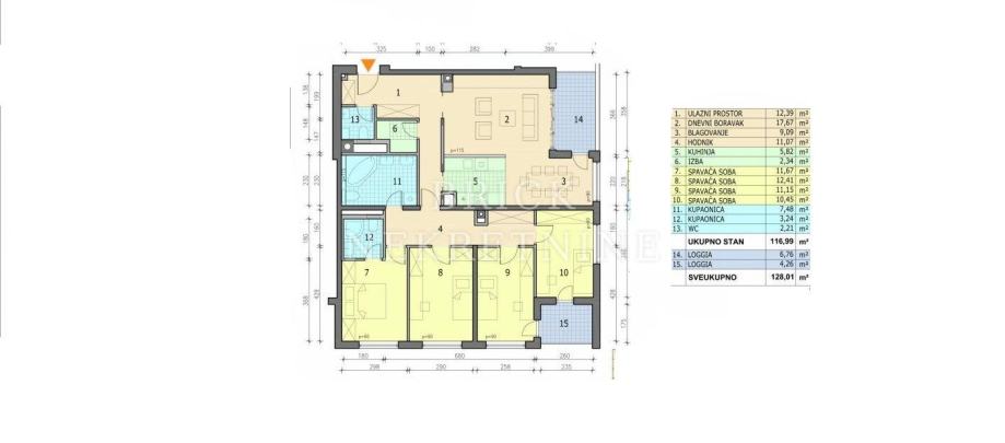 Prodaje se peterosoban stan površine 128 m2 na 2. katu zgrade s liftom.
