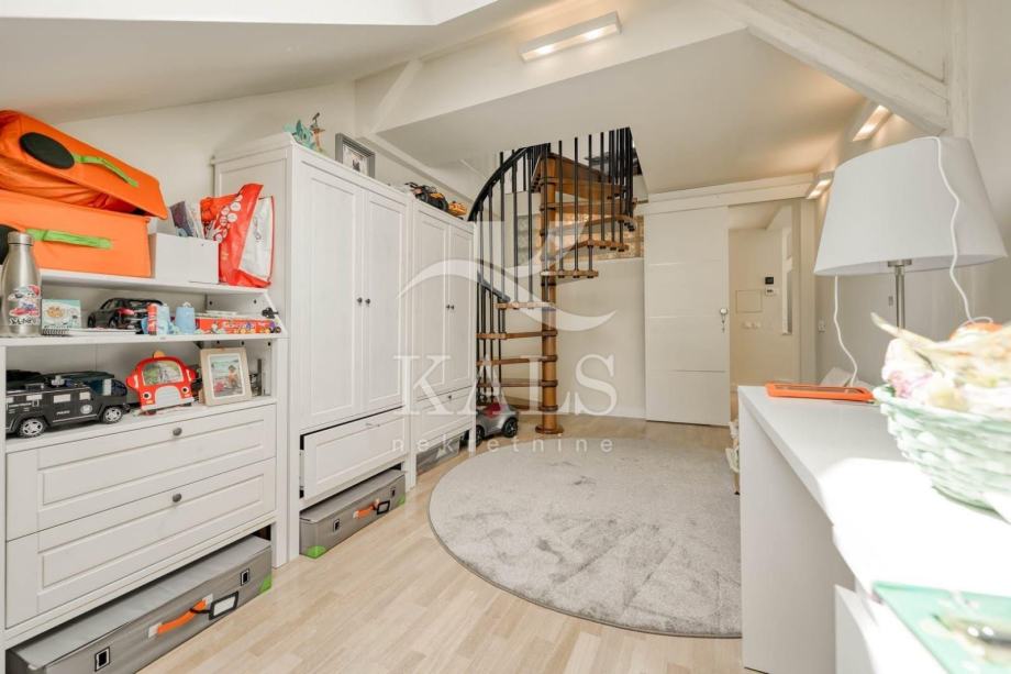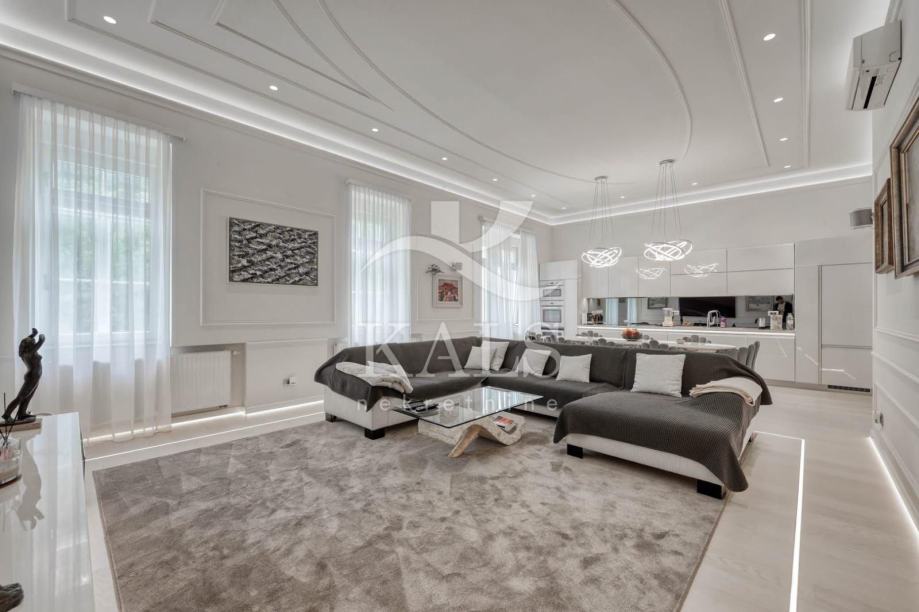 Prodaje se dvoetažan stan (etažiran kao poslovni prostor) površine 235 m2 na drugom katu zgrade u samom centru Zagreba.