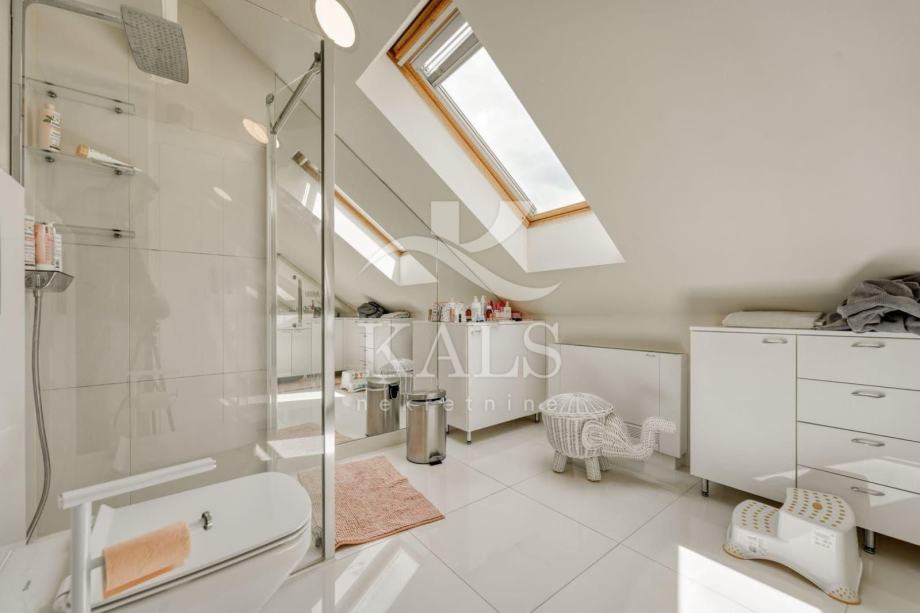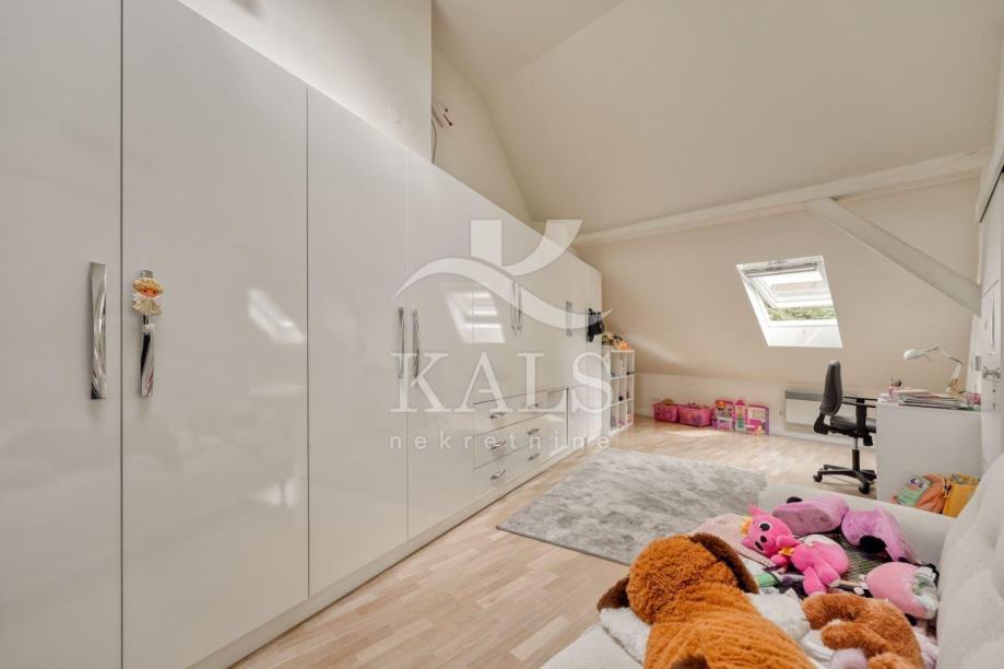 Na prvoj etaži nalazi se ulazni prostor, prostrani dnevni boravak sa kuhinjom i blagovaonicom, manja soba koja služi kao vešeraj i WC. Druga etaža sastoji se od tri sobe, dvije velike garderobe, dvije kupaone sa WC-om, ostave i hodnika.