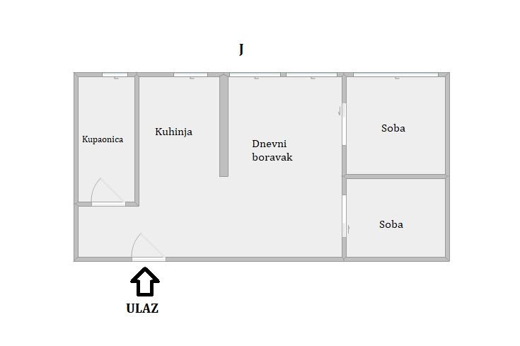 Stan se sastoji od dnevnog boravka, kuhinje, 2 spavaće sobe, kupaonice s WC-om te hodnika.