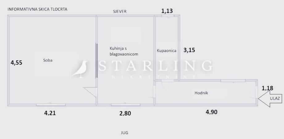 Sastoji se od sobe, kuhinje s blagovaonicom, kupaonice i hodnika.