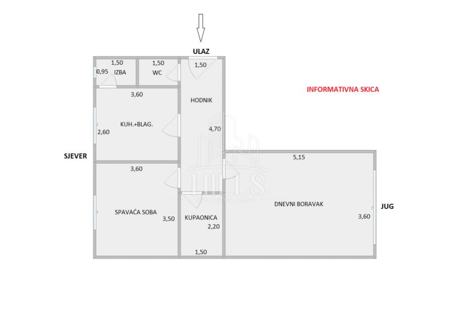 Stan se sastoji od ulaznog hodnika, dnevnog boravka, kuhinje i blagovaonice, spavaće sobe, kupaonice, wc-a i izbe. Stan na korištenje ima i dodatno spremište na istoj etaži.