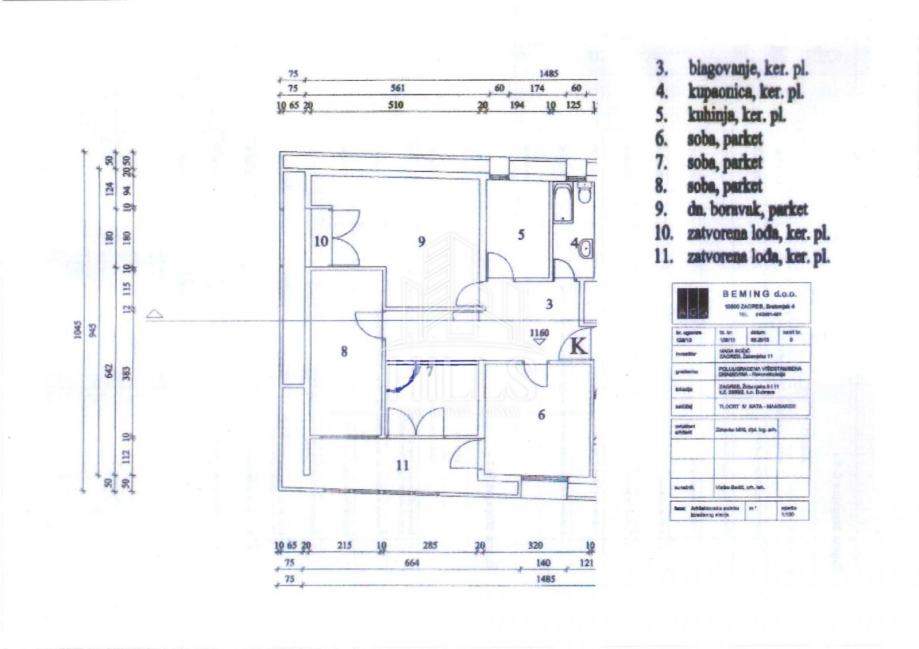 Stan se sastoji od hodnika, dnevnog boravka, kuhinje, blagovaonskog dijela, četiri spavaće sobe, kupaonice s wc-om i dvije loggie.