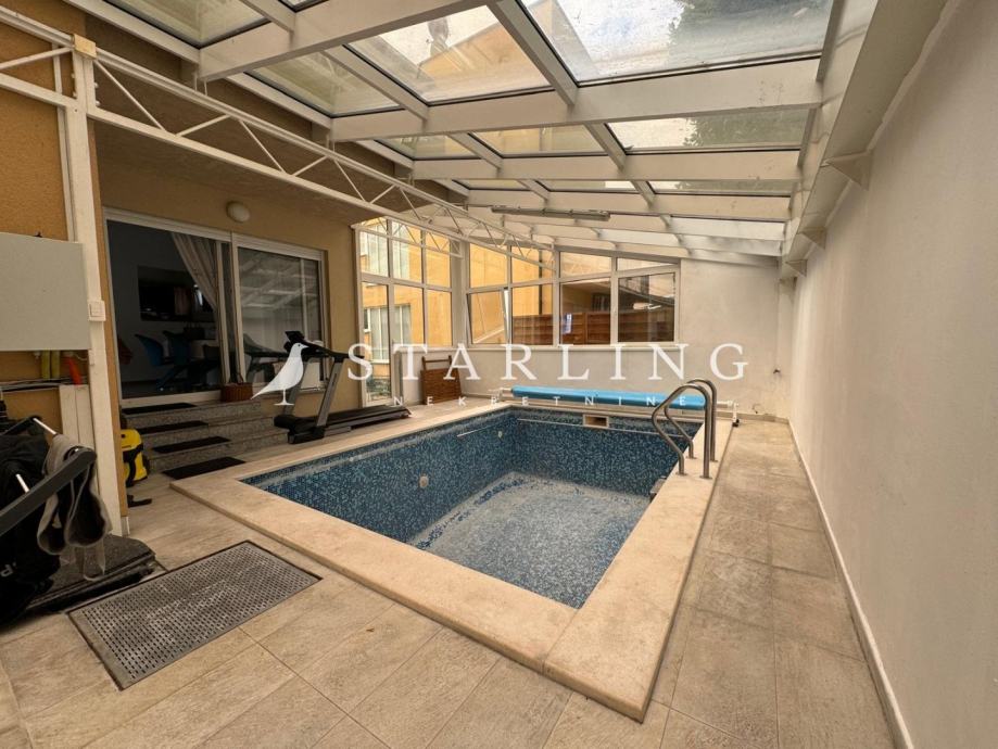 Stan se sastoji od dnevnog boravka, open-space kuhinje s blagovaonicom, tri spavaće sobe, kupaonice s WC-om, zasebnim WC-om, hodnika, loggie, terase i zimskog vrta s bazenom.