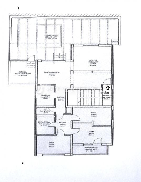 Prodaje se četverosoban stan površine 164 m2 u visokom prizemlju zgrade bez lifta.