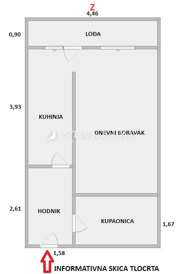 Stan se sastoji se od dnevnog boravka/sobe, kuhinje s blagovaonicom, kupaonice s wc-om, hodnika i lođe.