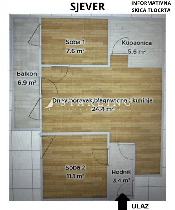 Prodaje se trosoban stan površine 54 m2 na četvrtom katu zgrade s liftom.