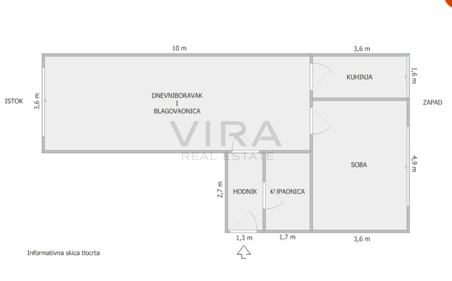 Prodaje se dvosoban stan površine 62 m2 na trećem katu zgrade bez lifta.
