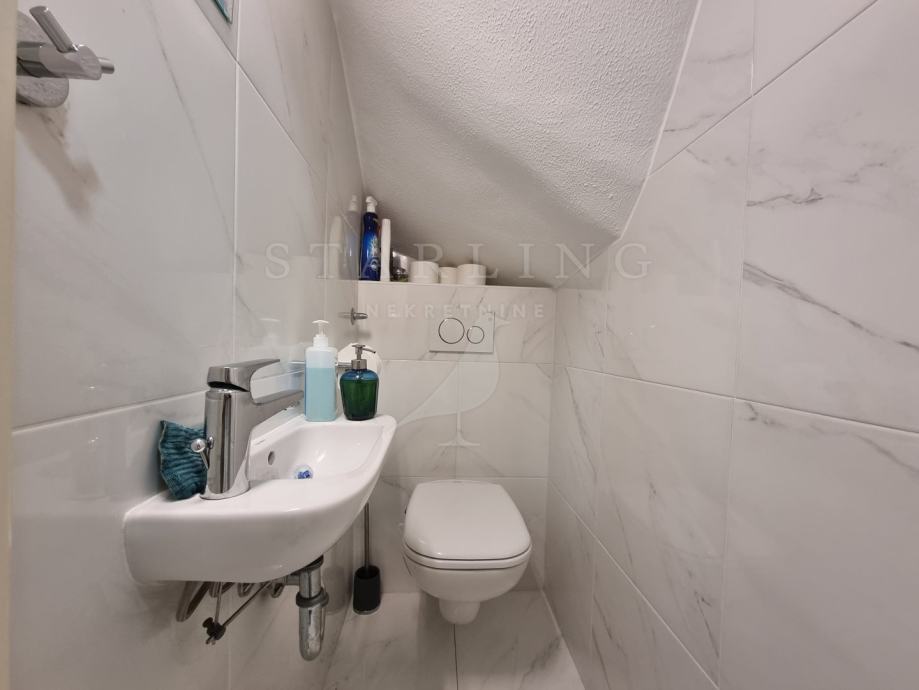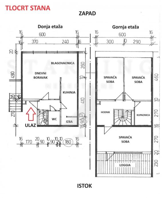 - GORNJE ETAŽE: tri spavaće sobe, kupaonica s wc-om, hodnik i terasa površine 12 m2.
