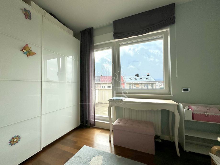 Stan se sastoji od dnevnog boravka, kuhinje, blagovaonice, dvije spavaće sobe, kupaonice, zasebnog wc-a, hodnika i tri terase.