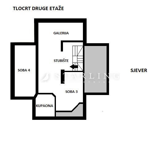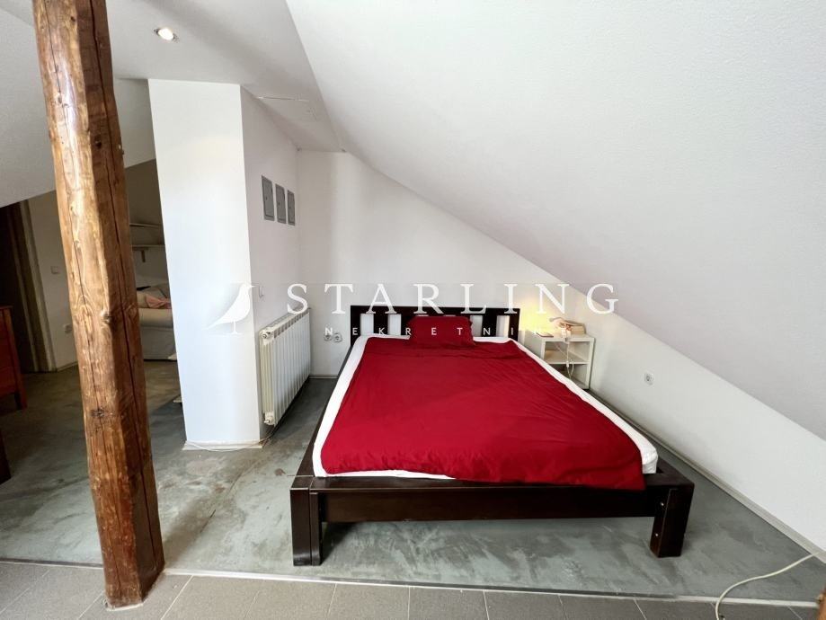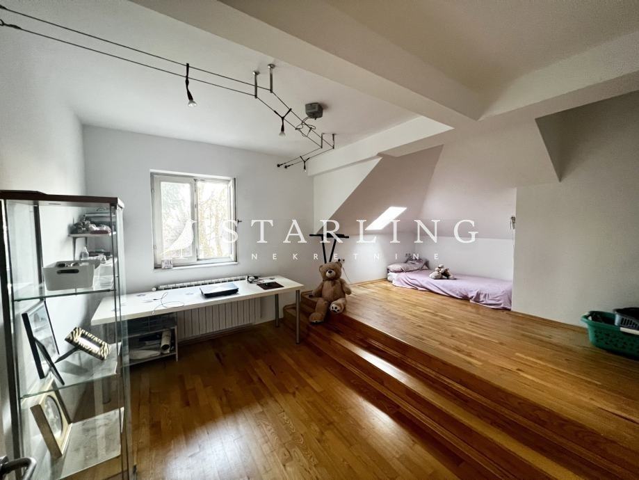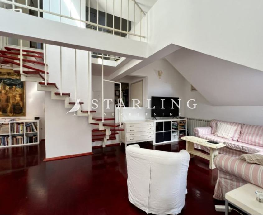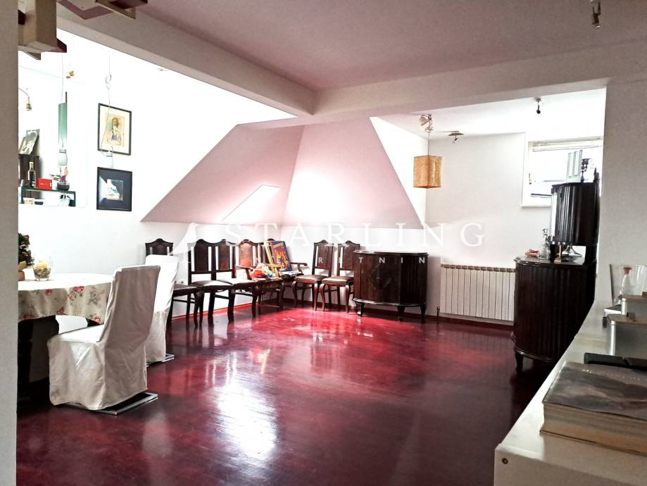 Prodaje se četverosoban stan površine 158 m2 (u naravi 180 m2) u potkrovlju stambene zgrade bez lifta.