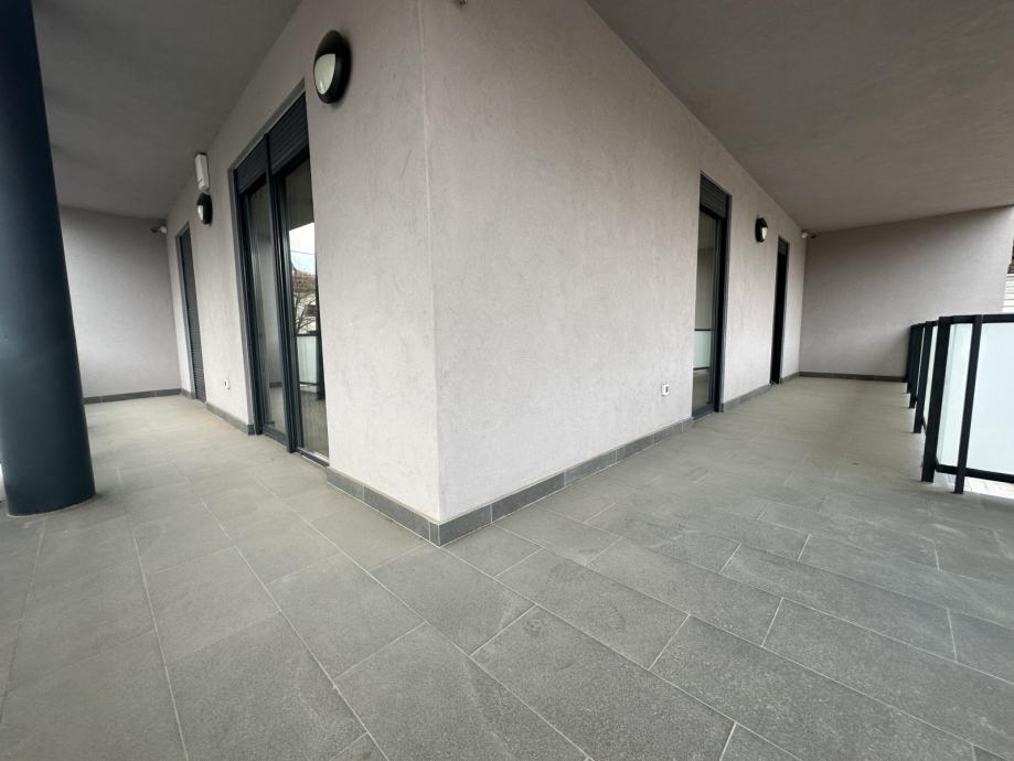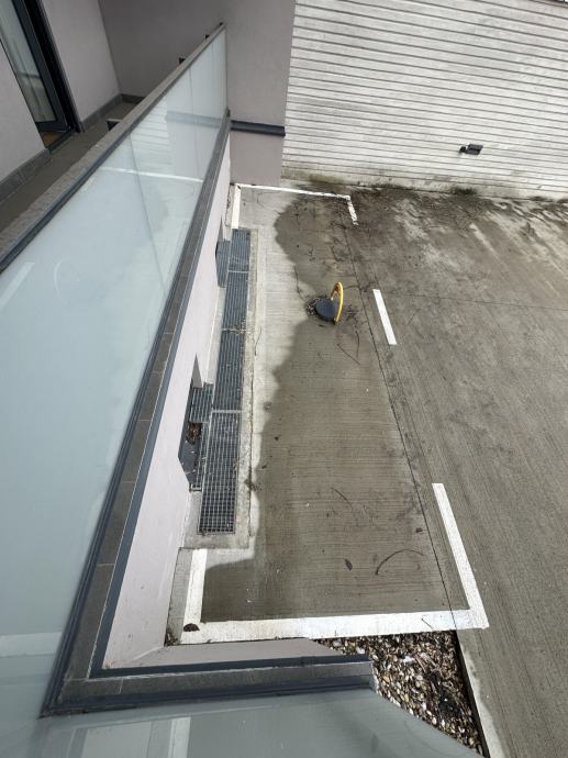 Također, stan okružuje natkrivena terasa korisne površine 30 m2, te mu pripada vanjsko parkirno mjesto 12,80 m2 i zatvoreno spremište na etaži stana.