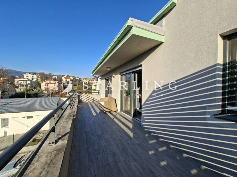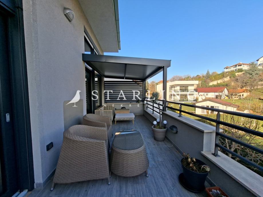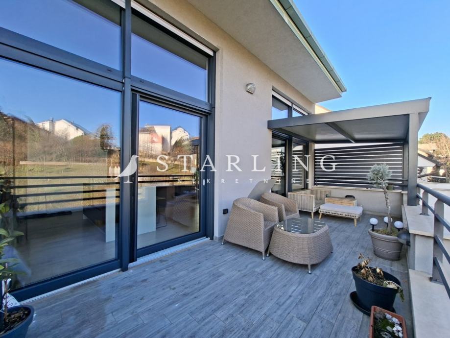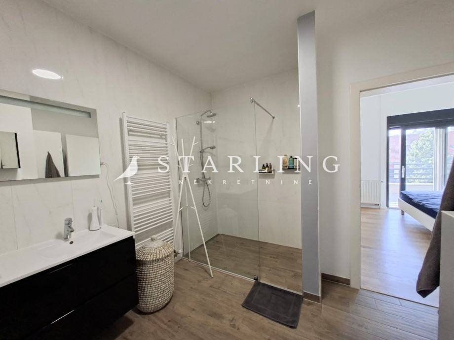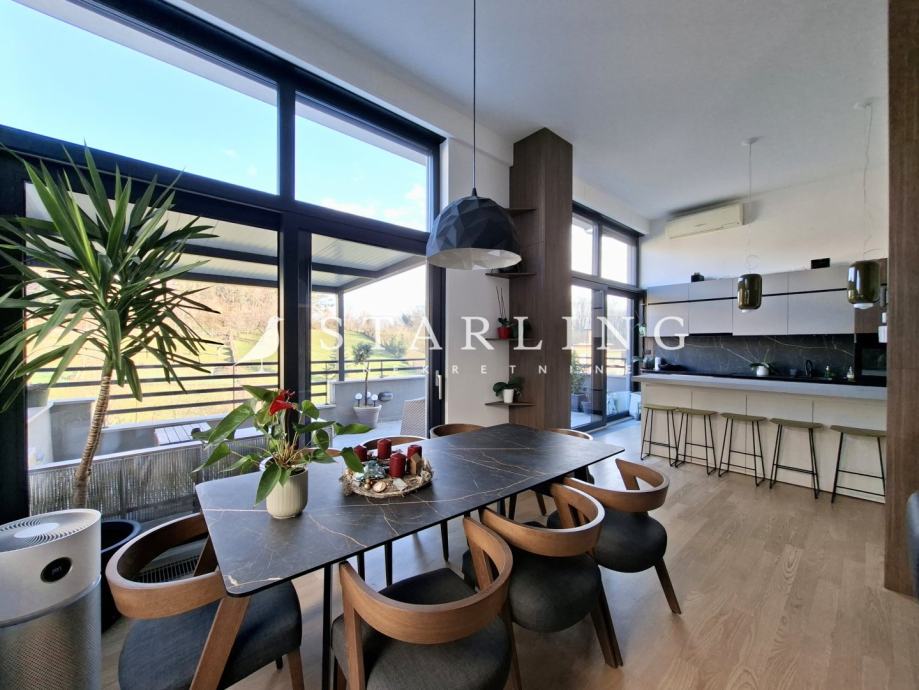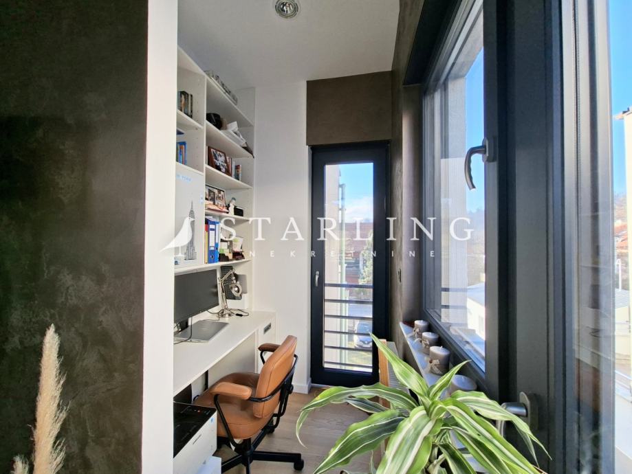 Stan se sastoji od dnevnog boravka s blagovaonicom, kuhinje, dvije spavaće sobe s WALK-in ormarima, manje radne sobe, dvije kupaonice s WC-om, hodnika, ostave i dvije terase.