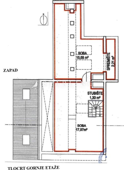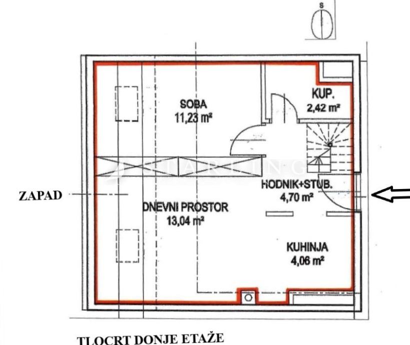 Visina stropa: 2,56 m donja etaža / srednja točka 1,9 m gornja etaža