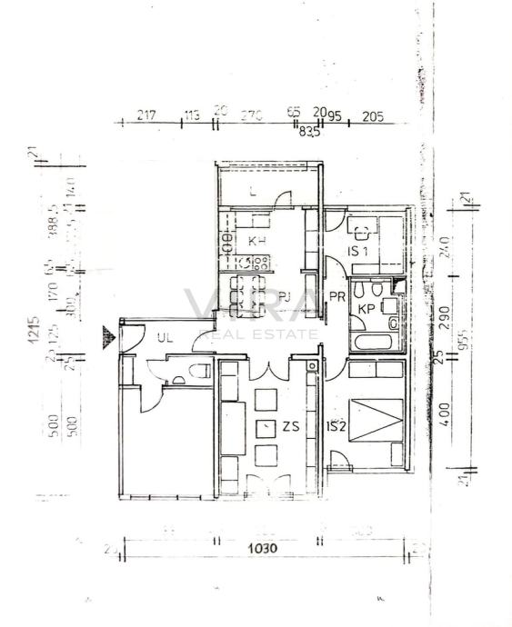 Stan se sastoji od dnevnog boravka, kuhinje, blagovaonice, 3 spavaće sobe, 2 hodnika, kupaonice, wc - a i loggie.