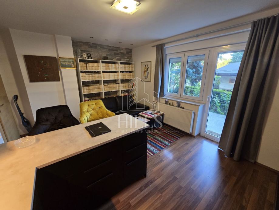 Stan ima upisanih 38 m2 te mu pripada terasa ispred od 9m2, dio vrta na koji ima izlaz te spremište od 7 m2.