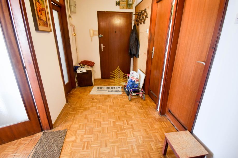 Stan se sastoji od dvije spavaće sobe, wc-a i kupaonice, prostranog dnevnog boravka te dvije lođe koje nude lijep pogled na okolnu prirodu. Mirna lokacija i blizina prirode čine ovaj stan savršenim za obitelji ili one koji traže miran kutak u urbanoj sredini. Grijanje je centralno putem toplane, što osigurava ugodnu temperaturu tijekom hladnijih mjeseci.