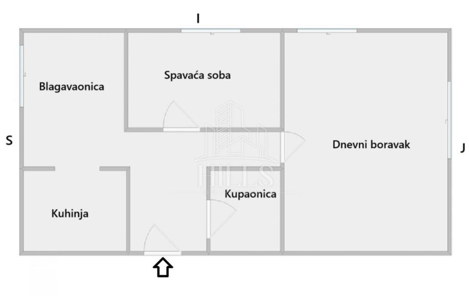 Stan se sastoji od dnevnog boravka, blagovaonice, kuhinje, spavaće sobe, kupaonice i hodnika.