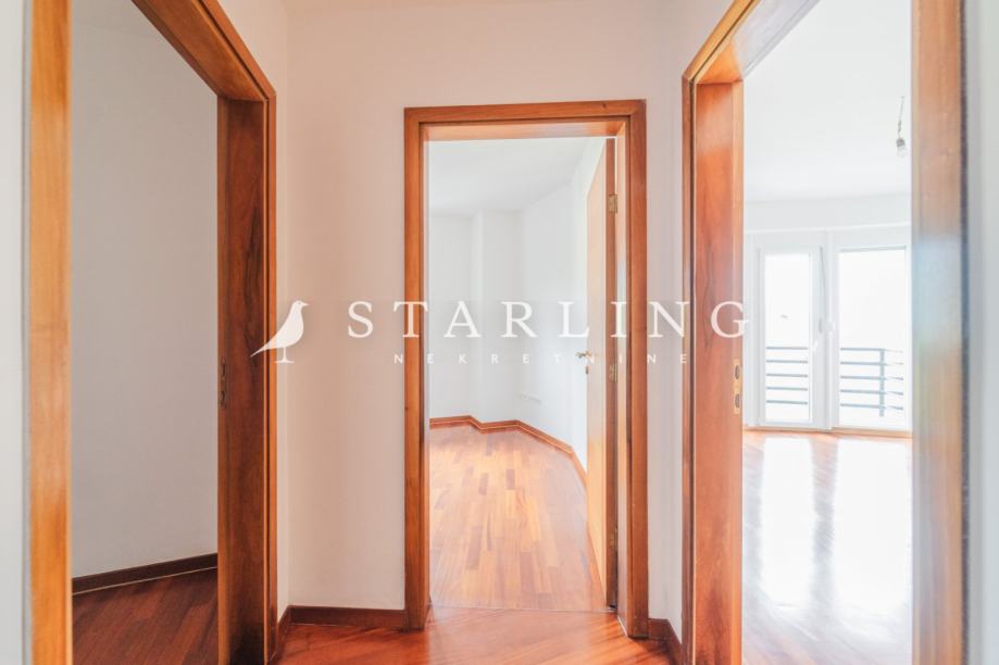 Stan se sastoji od dnevnog boravka, blagovaonice, kuhinje, tri spavaće sobe, 2 kupaonice, wc-a, garderobe, 2 balkona, hodnika te spremišta.