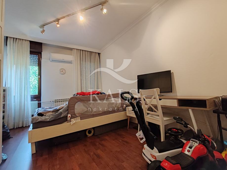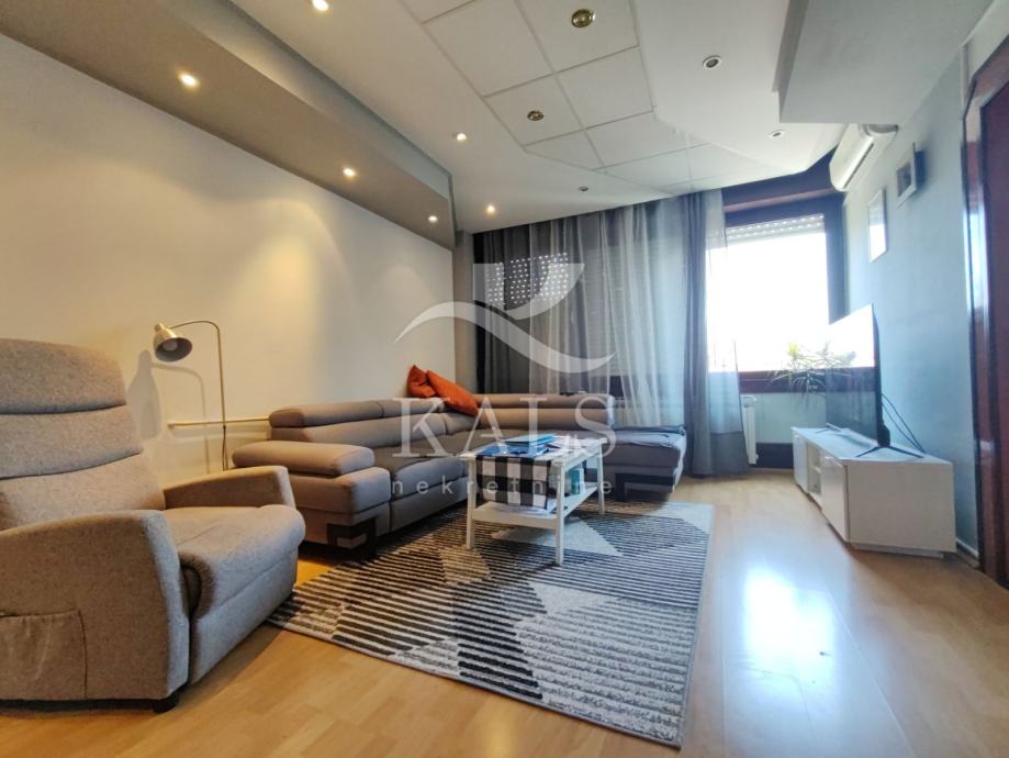Stan se sastoji od dnevnog boravka, kuhinje s blagovaonicom, velike spavaće sobe, manje spavaće sobe, kupaone, WC-a, predsoblja, hodnika i balkona.