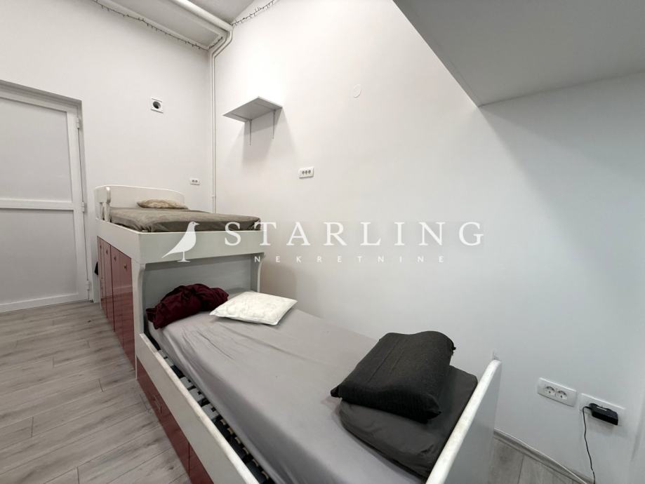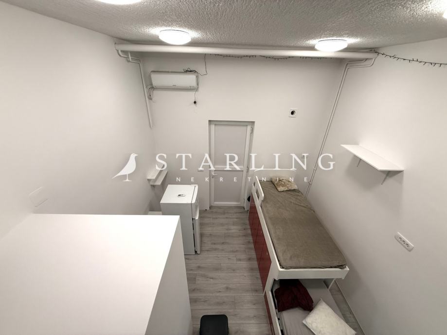 Stan se nalazi u pothodniku zgrade i originalno je korišten kao poslovni prostor i tako je i upisan u vlasnički list. Vlasnici su ga naknadno adaptirali u stan i koristili za stanovanje i iznajmljivanje. Procijenjeni iznos mjesečnog najma je 400 eura.