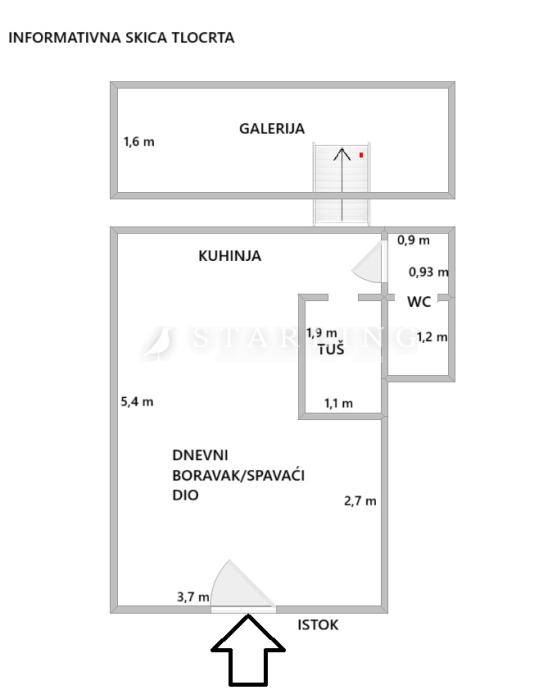 Tlocrtna površina stana je 23 m2 dok je površina galerija 4 m2.