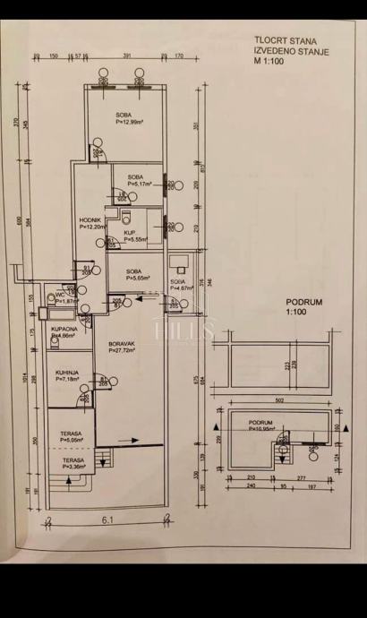 Upisana površina stana u vlasničkom listu je 91,74 m2, no u tu površinu nije uračunata terasa, vrt, lođa i podrum.