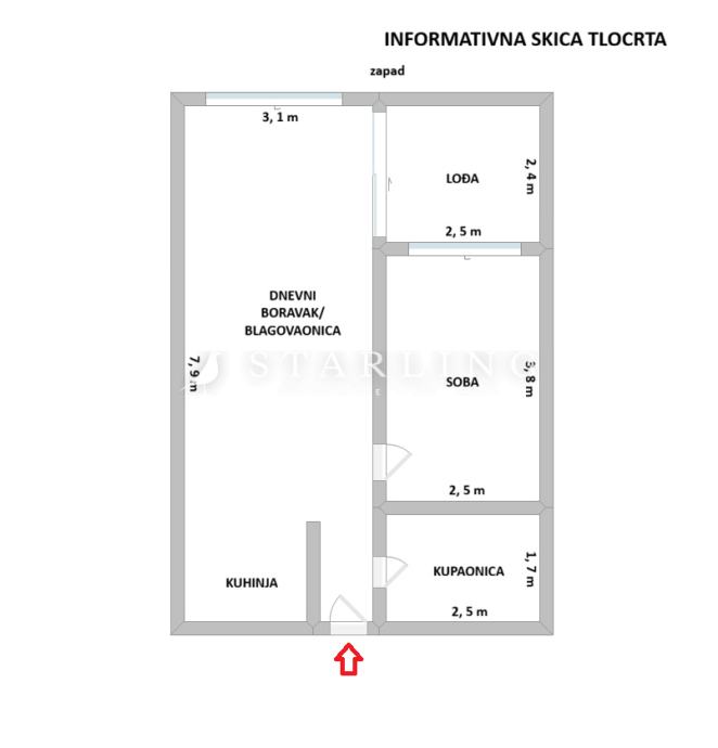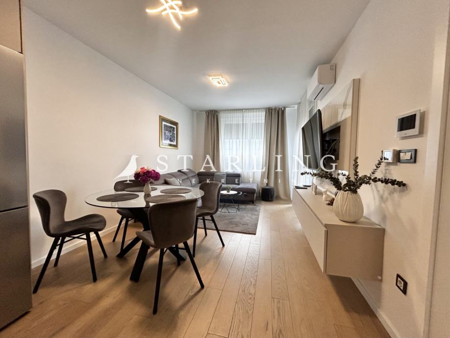 Stan se sastoji od open space dnevnog boravka, kuhinje i blagovaonice, spavaće sobe, kupaonice s wc-om, hodnika i loggie.