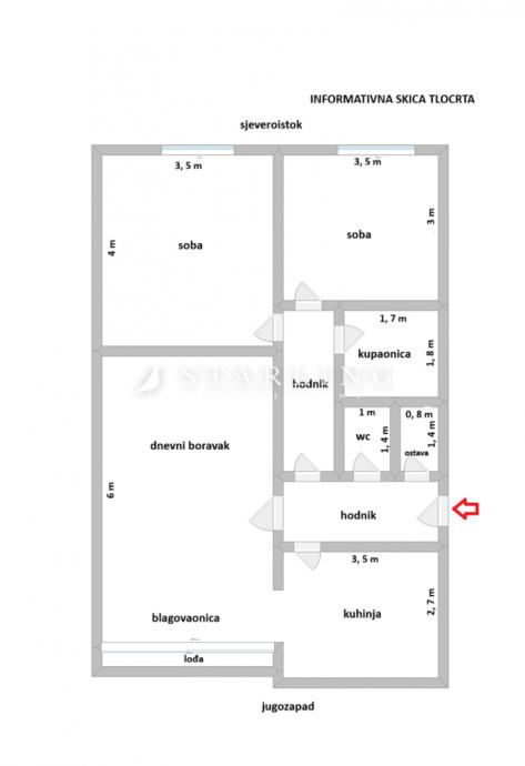 Prodaje se trosoban stan površine 75 m2 na drugom katu zgrade bez lifta.