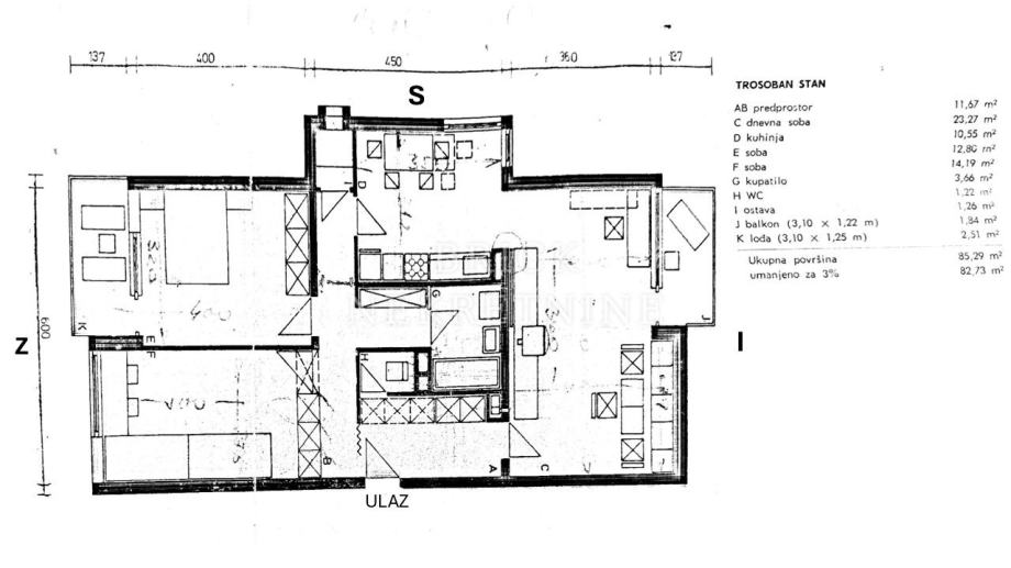 Prodaje se trosoban stan površine 78 m2 na trećem katu zgrade bez lifta.