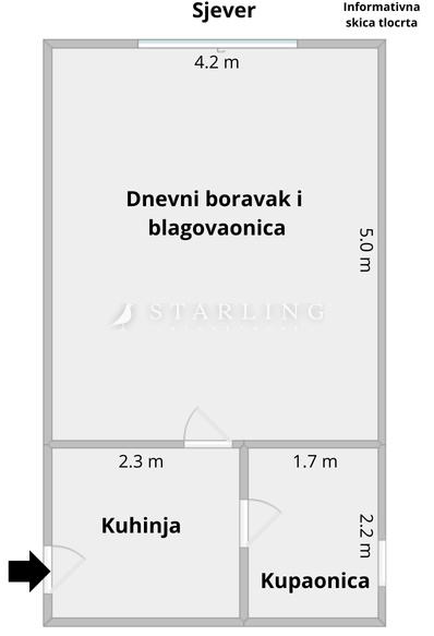 Stan se sastoji od dnevnog boravka i blagovaonice, kuhinje i kupaonice.