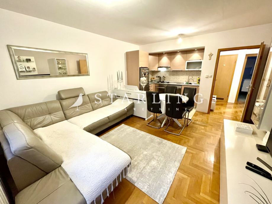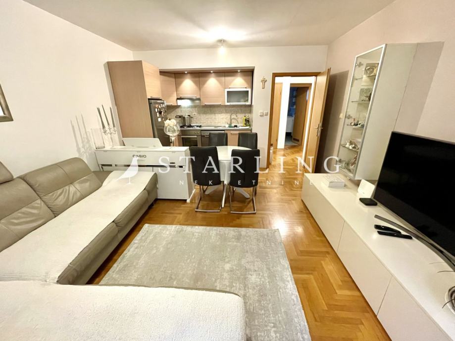 Stan se sastoji od prostranog dnevnog boravka s blagovaonicom, kuhinje, dvije sobe, kupaonice, zasebnog wc-a, hodnika i dvije lođe.