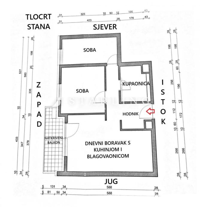 Površina zatvorenog djela stana iznosi cca 51 m2 neto kvadrature.