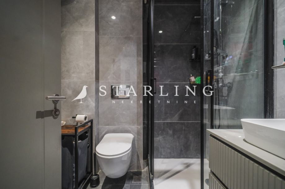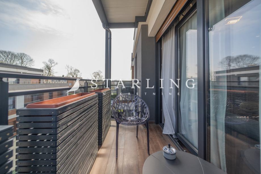 Stanu također pripada vanjsko parkirno mjesto površine 12 m2 i zidano spremište površine 2 m2 koji su etažirani uz stan. Ukupna kvadratura stana, balkona i pripadaka s obračunatim koeficijentima iznosi 63 m2.
