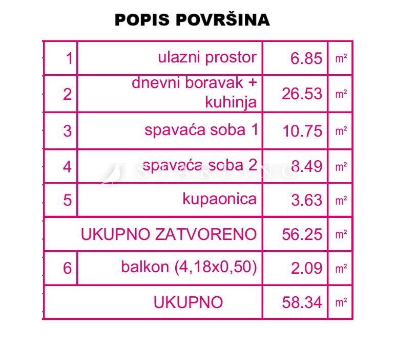 Zatvorena površina stana iznosi 56 m2.