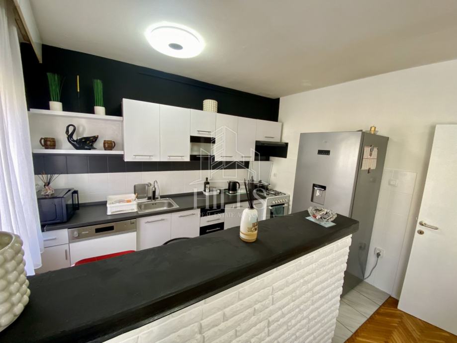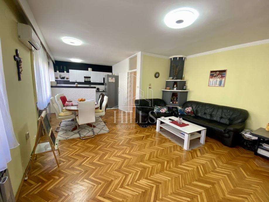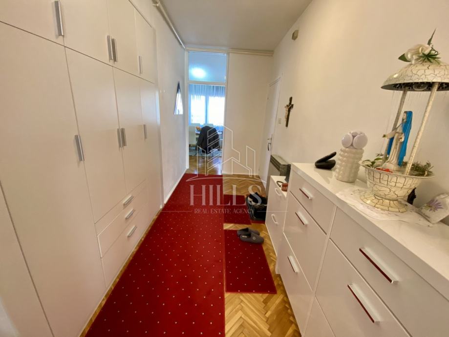Stan se sastoji od dnevnog boravka, kuhinje s blagovaonicom, tri spavaće sobe, kupaonice s wc-om, zasebnog wc-a, hodnika, predsoblja i balkona.