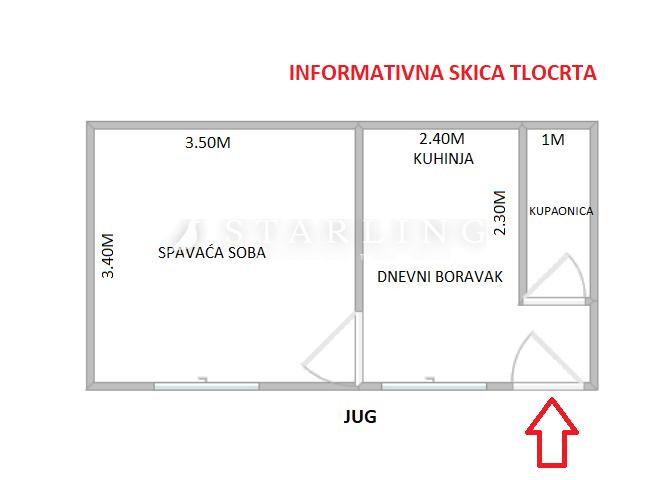 Stan se sastoji od dnevnog boravka s kuhinjom, spavaće sobe i kupaonice s WC-om.