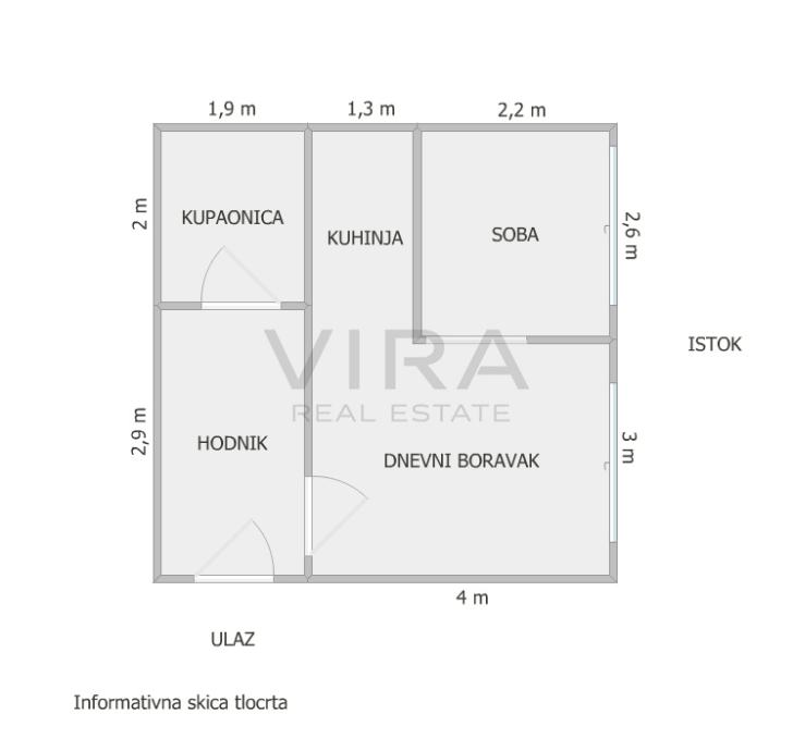 Prodaje se jednosoban stan površine 29 m2 na visokom prizemlju zgrade bez lifta.