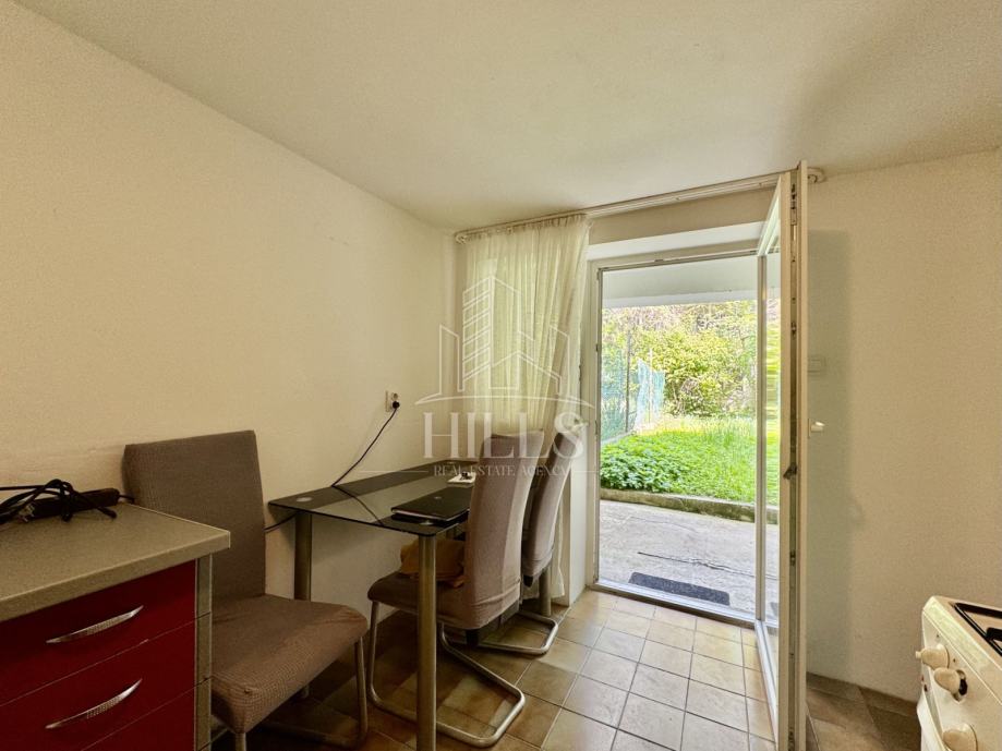 Stan se sastoji od ulaznog halla, dnevnog boravka/spavaće sobe, kuhinje, blagovaonice, kupaonice i wc-a. Stan na korištenje ima vrt površine cca 60 m2.